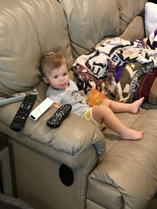 My new favorite spot to relax and eat cheerios, Daddy’s spot!