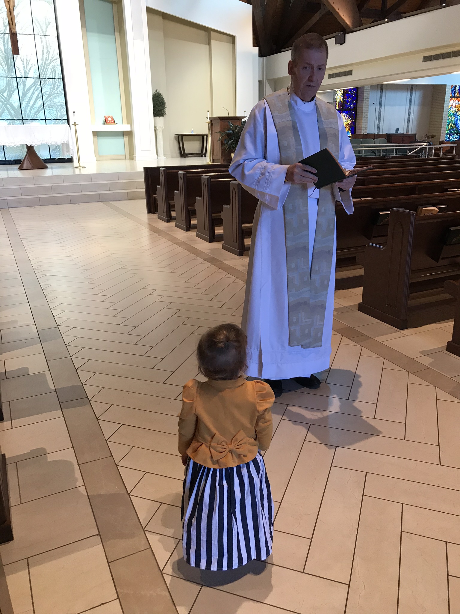 Ian will be Evie’s parrain but since he’s under 16 years old her Uncle J stepped in to handle the baptismal candle