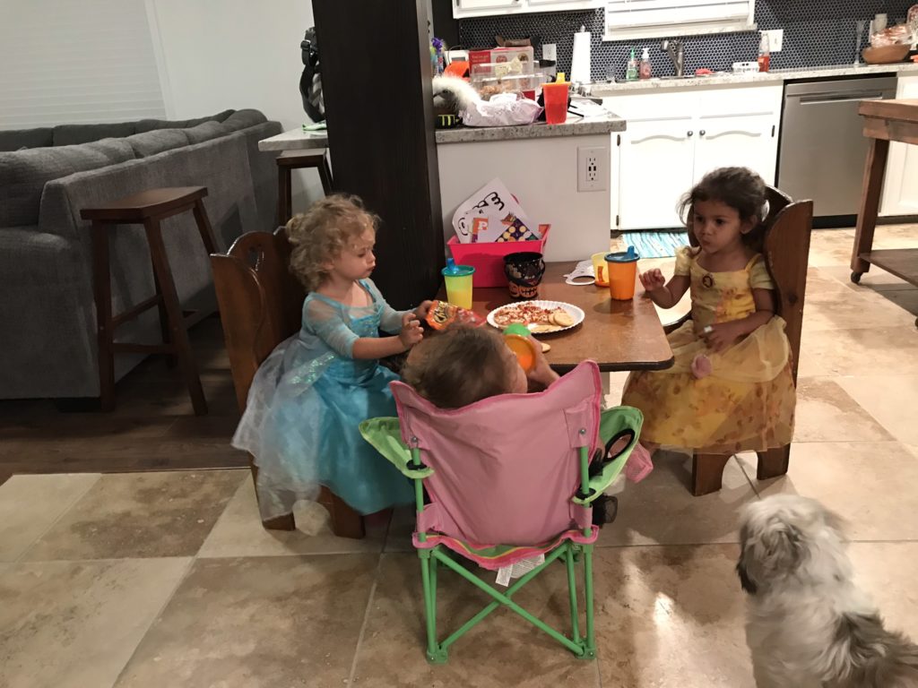After getting pulled around the neighborhood in a wagon to get free candy they got to sit down and eat some pizza. Sounds like a pretty sweet deal! Can’t wait for next Halloween!