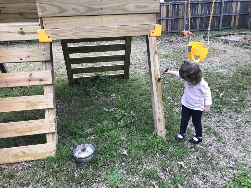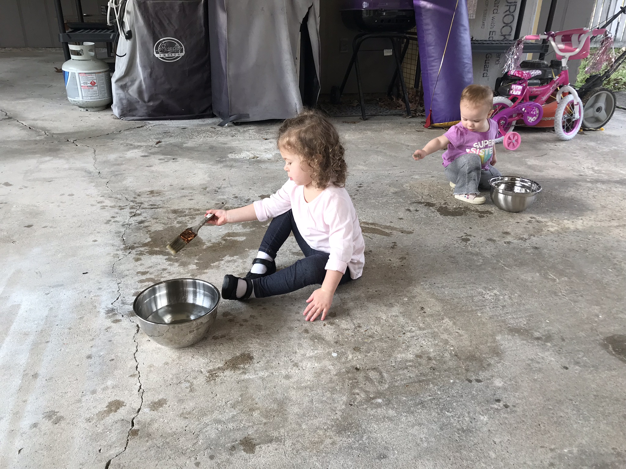 The girls “painting” outside on the concrete with some water