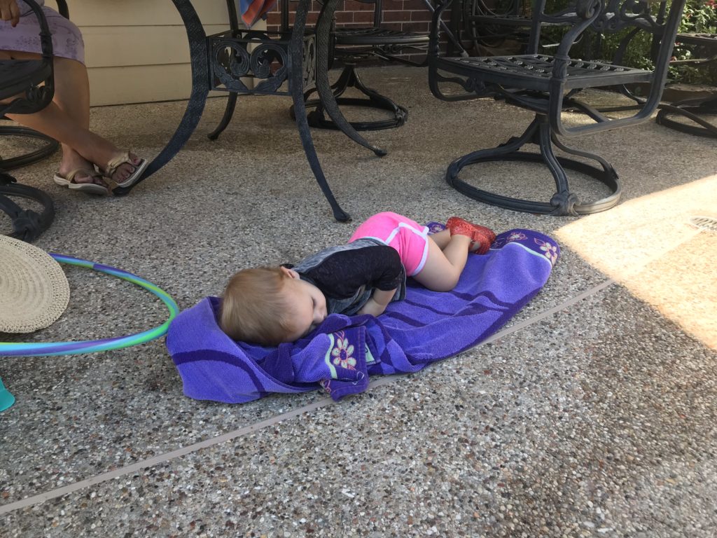 On Saturday, Evie just randomly laid down on this towel to relax for a while
