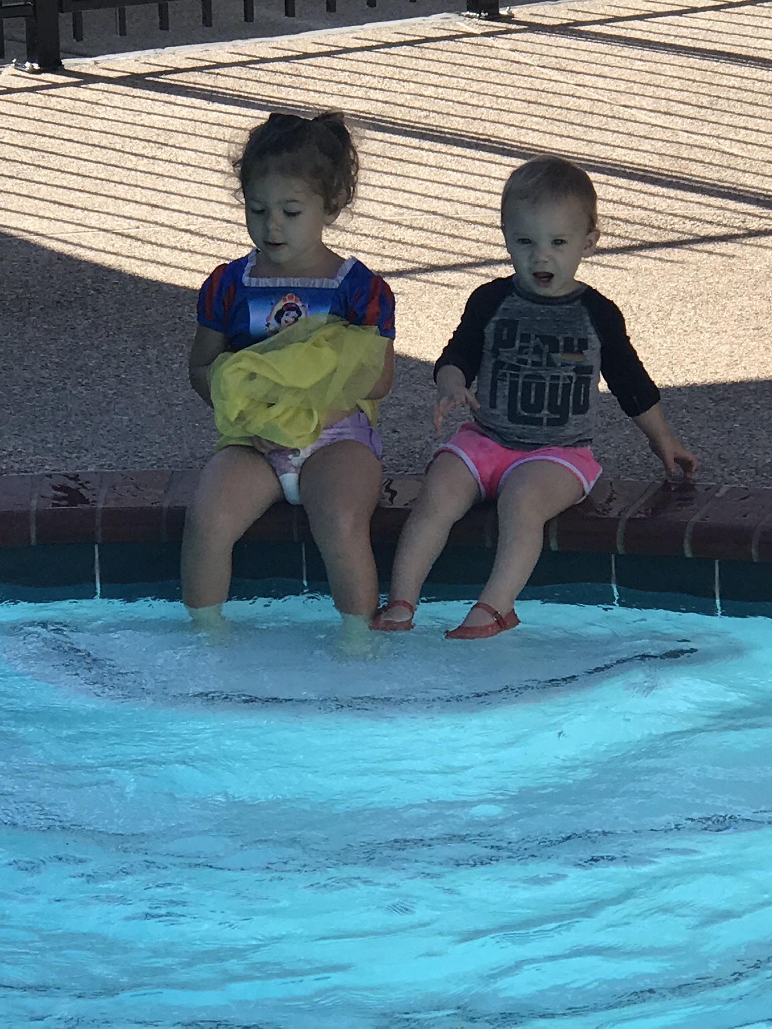 Ollie showing Evie how nice it is to just sit on the edge of the pool
