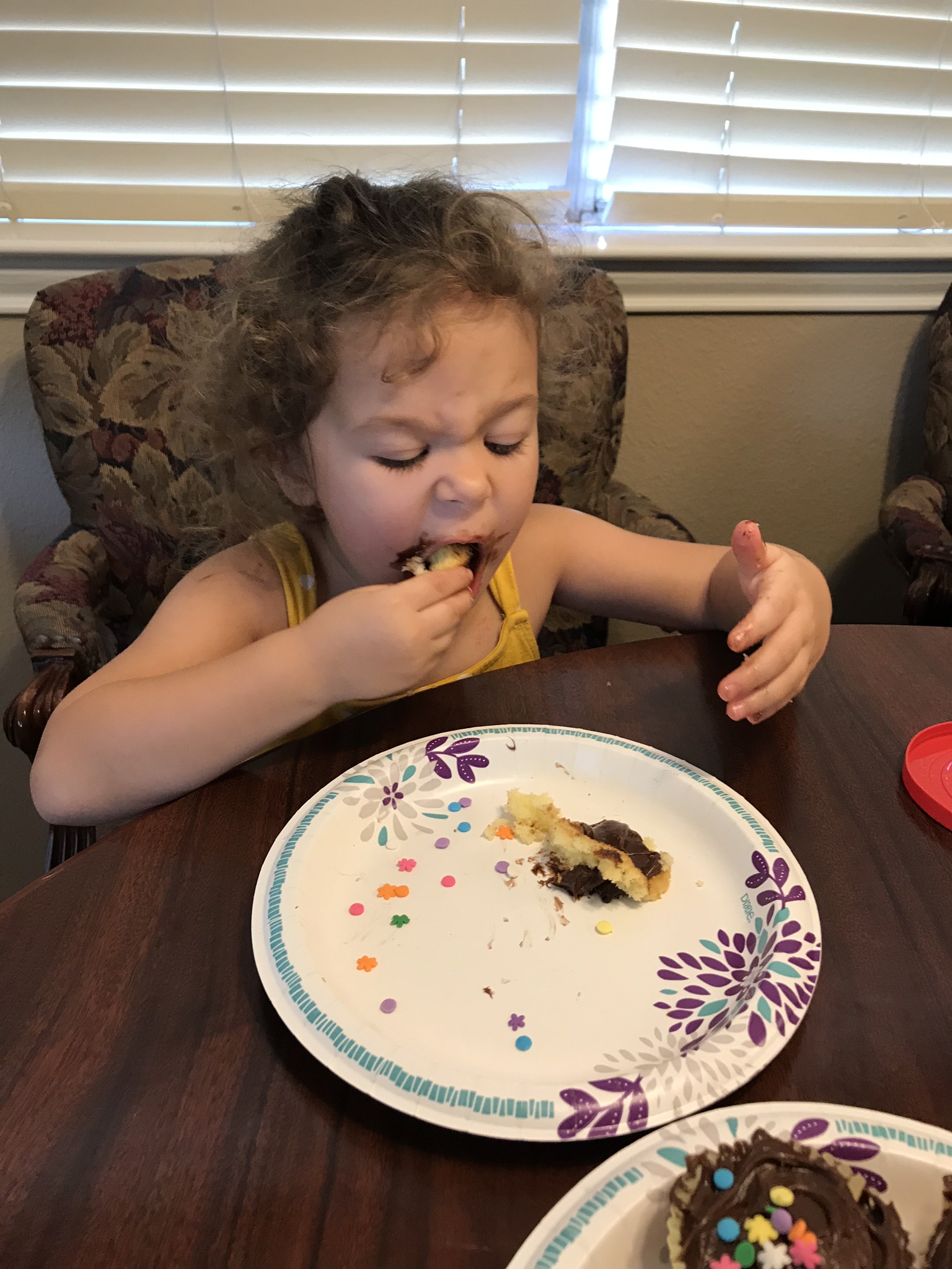Evie was home sick with a fever, but looked like a little faker with how much fun she was having