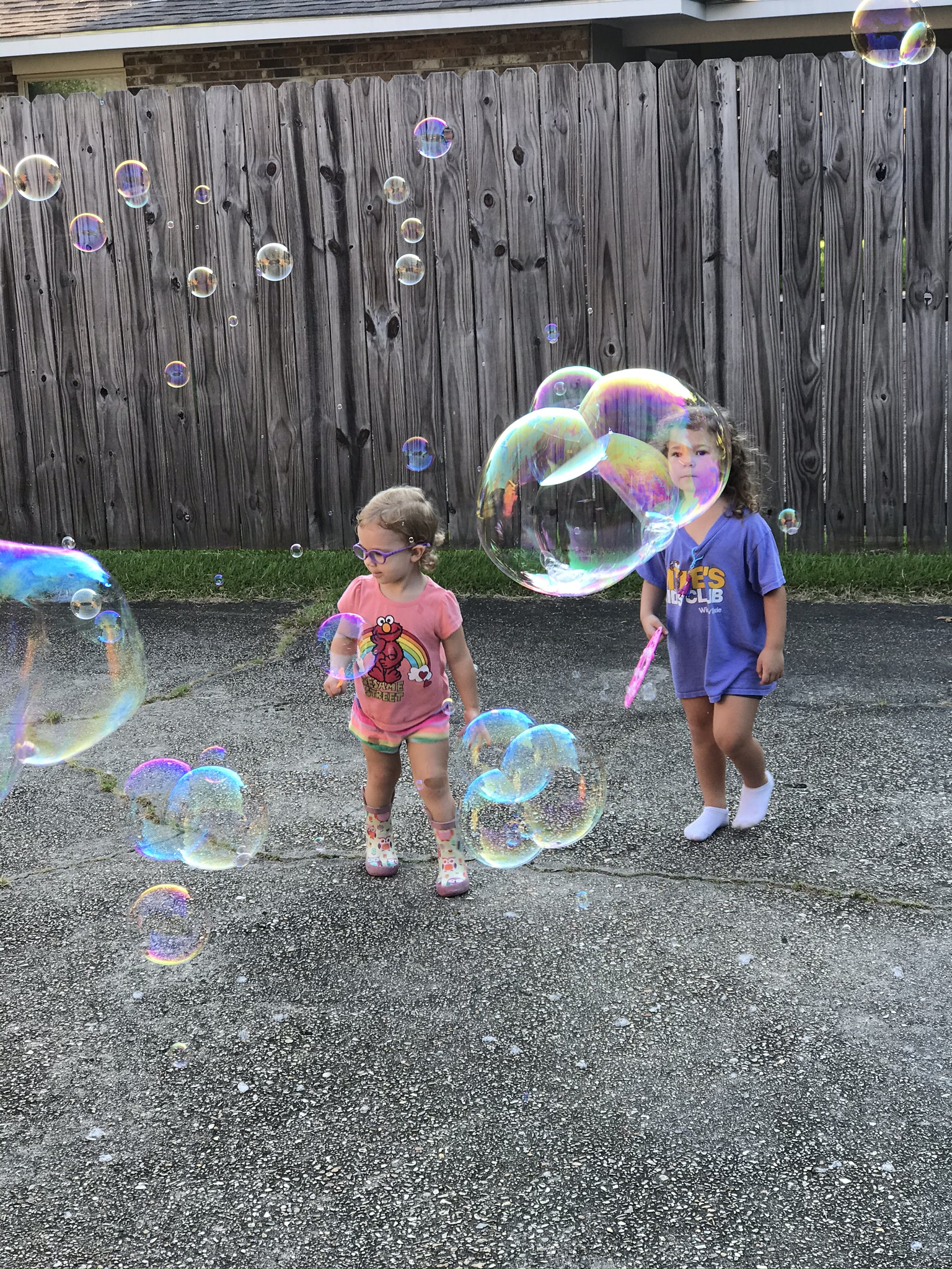 Having some fun with bubbles in the backyard