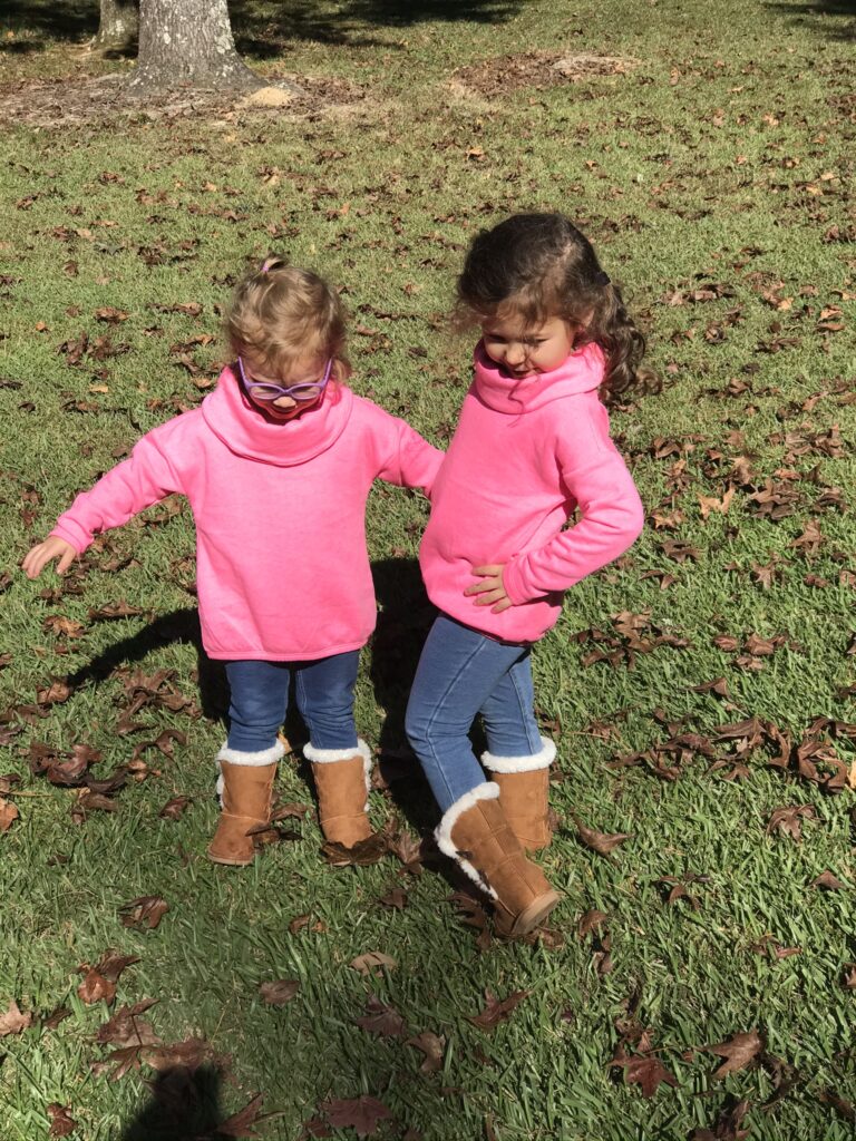 Then they put on matching outfits and frolicked around the yard